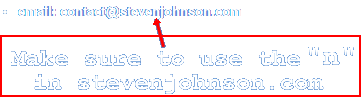 - US Mail: Steve Johnson, PO Box 1, Elbridge NY 13060